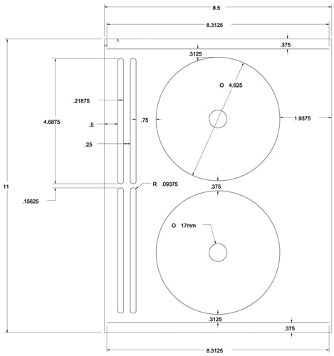 4.65" Full Face CD Blank Label Template - OL5625 - OnlineLabels Description: OL5625 - 4.65" Full Face CD template provided free to customers of OnlineLabels. Sheet Size: 8.5" x 11". Labels Per Sheet: 2. Width: 4.6875". Height: